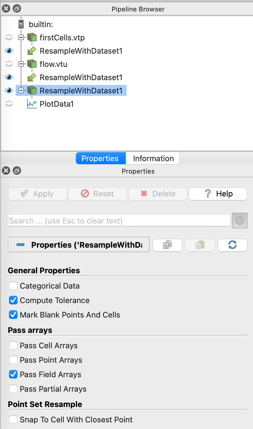 I’m talking about the vtkResampleWithDataSet filter. When I do my resampling in the ParaView GUI, I have a pipeline that looks like this: