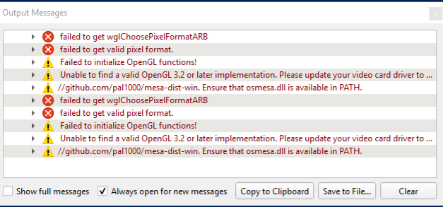 I recently updated the drivers for the NVidia GPU on our workstation as it was required for the DualSphysics solver. But since then Paraview fails to launch (worked fine before). Updating to v6.0.0 did not solve it.