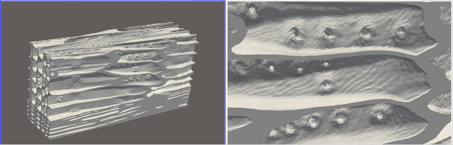 where there are the channels of the structure (channels in the axial direction) and connecting holes between them (the smalls holes on the right photo)