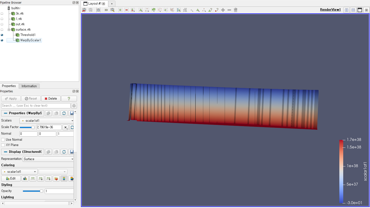 The same problem occurs even if I save it as VTK from the time you grid in Surfer and imported it into Paraview.