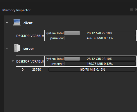 I’m testing this on my local machine (windows 11). Also after making the connection using paraview GUI, under memory inspector tab, only one processor is connected.