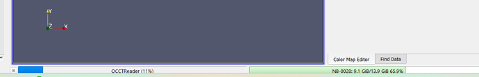 I am using ParaView 5.13.2 and encountering issues when opening STEP files with the STEPReader. The reader shown as OCCTReader gets stuck at a certain loading percentage and remains in this state for a long time. If I attempt to interact with the software during this process, it becomes unresponsive.