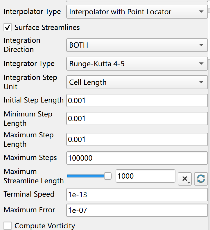 I try to generate streamlines of a harmonic tangent vector field on a smooth surface. I set the source of the tracer as a Poly Points Source. But the streamlines are unexpected short. So I searched for posts here. It’s great that I find this post: Particle Tracing until predefined z-coordinate - #4 by Kenneth_Moreland . I followed the instructions there and tuned the integration parameters. But the behavior of Paraview is quite irreproducible. Different results were obtained for same parameters. Sometimes it generates long streamlines as desired (stop at custom termination conditions), but most of time it stops much too early. And the worst is, after several round of tuning, I can never get it work well any more. I am new to ParaView and I am not sure what mistake I have made. Can someone help me? Why is the behavior of the streamline tracer irreproducible? How to fix it? Thank you very much!