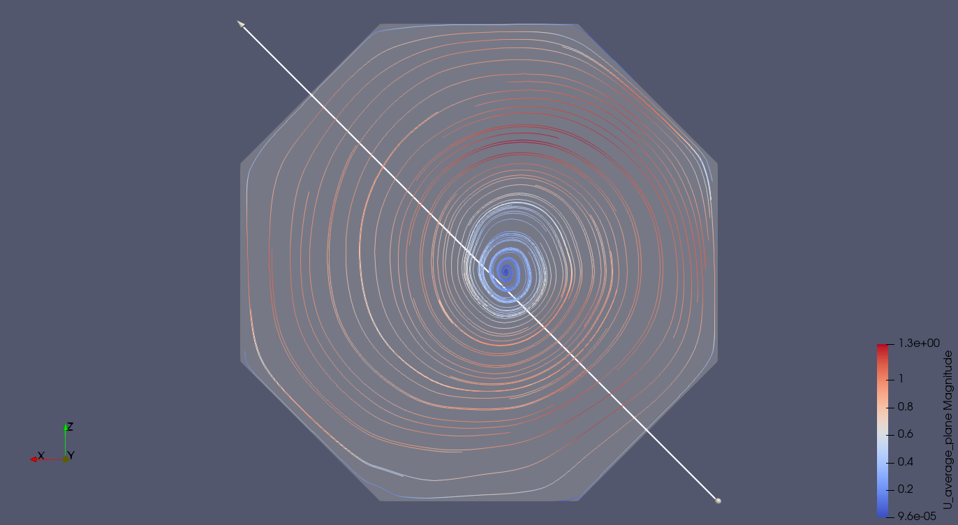 - Use now the “Stream Tracer” filter, with Vectors = U_average_plane and Seed Type = Line.